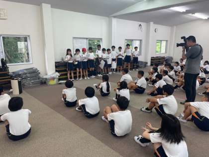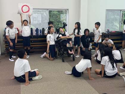 続いての活動は、室内レクリエーションです。まるばつクイズでは、先生方の特技も飛び出しました。