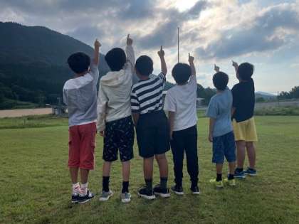子どもたちの活動が始まりました。集合場所に一番に出てきたグループの子どもたちの勇姿です!