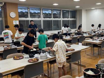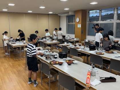 朝食の準備です。食事係の子どもたちがテキパキと動き、みるみるうちに整いました。