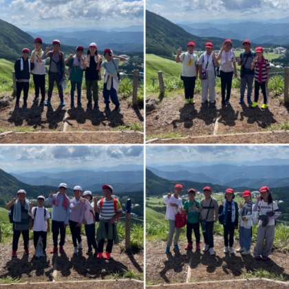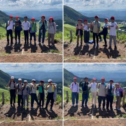 活動班ごとに、登頂の喜びを表すポーズをとってもらいました。みんなとてもいい顔をしています。