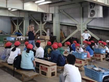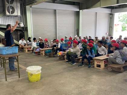 山から下りたあとの活動は、飯ごう炊さんです。まず、スタッフの方から、薪のくべ方や飯ごうでの米の炊き方、カレー作りの手順等について説明していただきました。