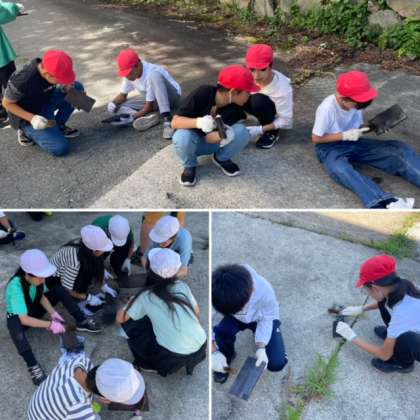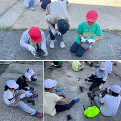 次の活動は、焼き板作りです。まずは、焼き板をブラシでこすって磨き、余分な炭を落とします。