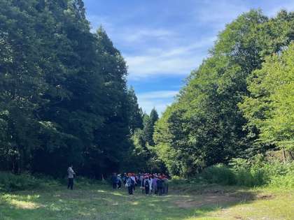 今日の最初の活動は、フィールドビンゴです。昨夜、真っ暗な中でナイトハイクをした森がどのような所だったのかを、明るい時にもう一度行って確かめます。