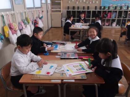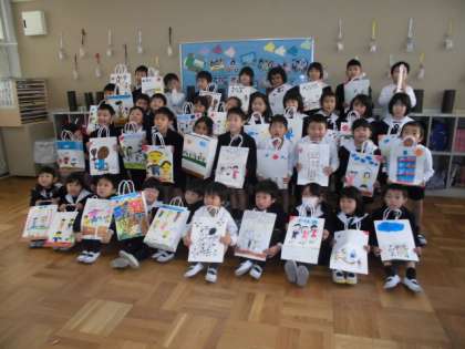 今日、毎日新聞社より取材に来られました。「みんなでなわとびをしているところを描きました。」「友だちといっしょに鉄棒をしてすごく楽しかったからこの絵を描きました。」「うれしかった気持ちを伝えたいです。」などと、はきはきと答える姿はほほえましいものでした。