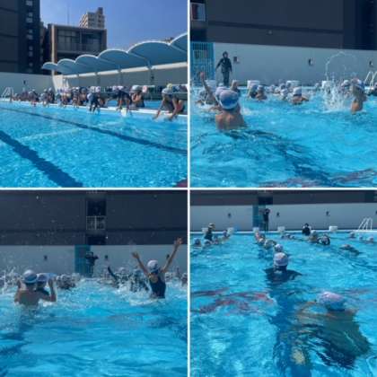 先週の金曜日、1年生が今年度最後のプール水泳を行いました。小学校の大きなプールにもすっかり慣れた子どもたちは、フィナーレの宝さがし大会を心ゆくまで楽しんでいました。また来年のプール水泳を楽しみにしておこうね。