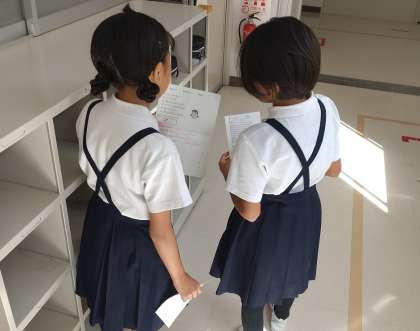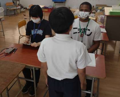 外国語の学習では、ペーパーテストだけではなく、実際に英語で会話をしたりスピーチをしたりするパフォーマンステストがあります。今日は5年生の子どもたちが、友達のことについて紹介をしたり、外国語の先生からの質問に答えたりしました。身ぶりや手ぶりを交えて相手にわかりやすく伝わるように工夫をしたり、テストを受けるギリギリまで友達と練習したり、頑張って取り組んでいました。