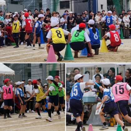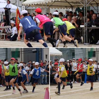 続いて、5・6年生の「紅白対抗リレー」です。練習してきたバトンパスをいかして、抜きつ抜かれつの、白熱したレースとなりました。
