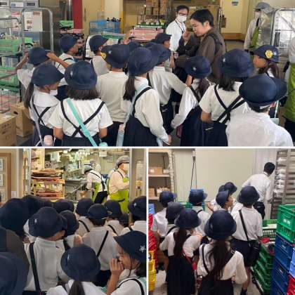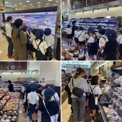 3年生の子どもたちが、校区にあるスーパーマーケットに社会見学に行きました。普段は入ることのできないバックヤードを見せていただき、お店の人のさまざまな仕事について学びました。特に、室温マイナス20度以下に設定されている冷凍室には、子どもたちもびっくりしていました。