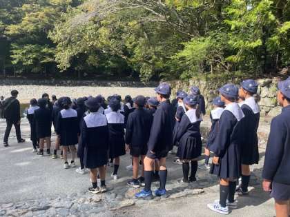 五十鈴川のほとりに出ました。川の水は驚くほど冷たくて、身の引き締まる思いがしました。