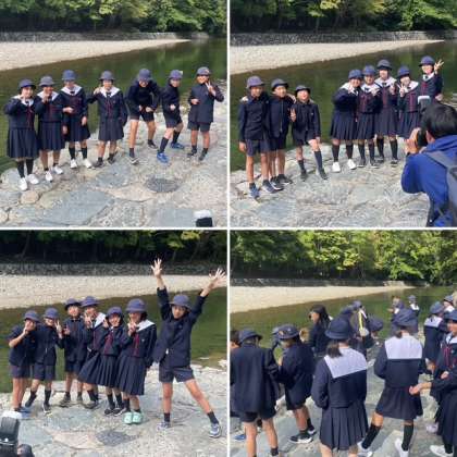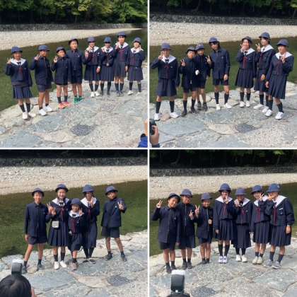 ここで、活動班ごとのグループ写真を撮影しました。思い思いのポーズで、はいチーズ!