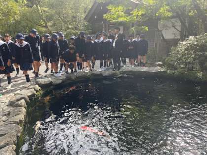 帰路の途中にある池には、立派な錦鯉の姿があり、子どもたちも目を見張っていました。