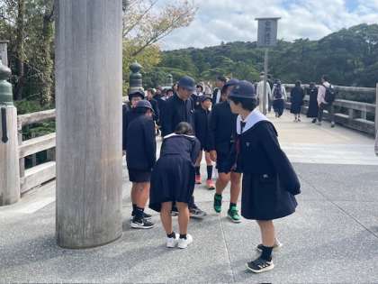 写真撮影を終えたあと、宇治橋を戻り、鳥居を抜けて伊勢神宮を後にしました。
