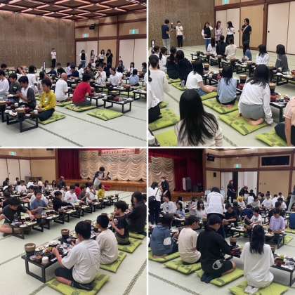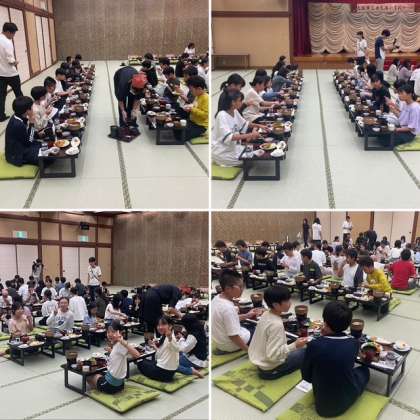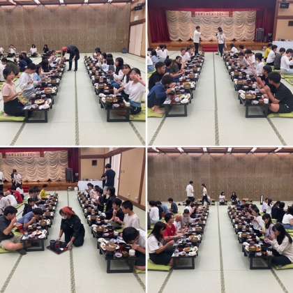 食事係の子どもたちの一日の感想をまじえたあいさつで、楽しい夕食が始まりました。手を合わせて、感謝して、心をこめて、いただきます!