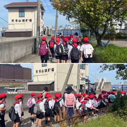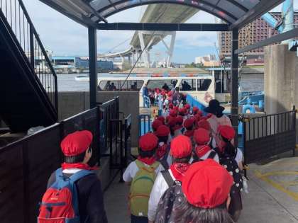 海遊館を出て、天保山渡船場に向かいます。この渡船は、明治時代に開設された市民の大切な移動手段で、港区と此花区の岸壁間約400mを結んでいます。