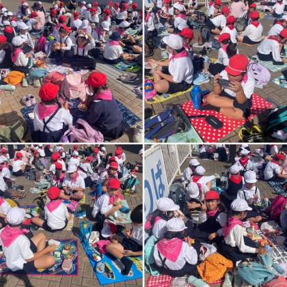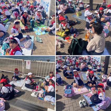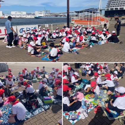 見学のあとは、お弁当の時間です。おうちの方の心のこもったお弁当をおいしくいただきます。海からの風が心地よいです。