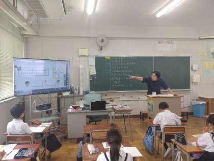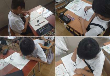 3年生の算数では「円と球」の学習をしました。学習の中で、コンパスの使い方についても練習をし、きれいに円を描けるように取り組みました。教科書の問題と同じ模様を描くためには、どこを中心にして、半径の長さを何cmにするのかなど、しっかりと考えながら進めていました。