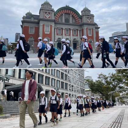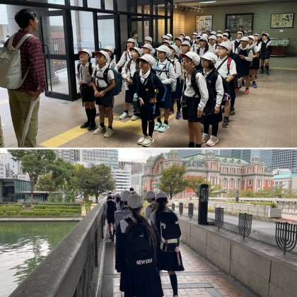 4年生が秋の遠足に出かけました。行き先は「長居公園」です。学校を出て、大阪市中央公会堂や大阪市役所の前を通り、淀屋橋駅から御堂筋線に乗りました。