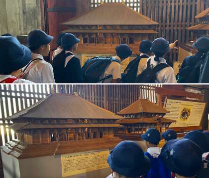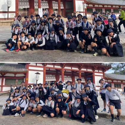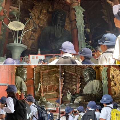 いよいよ、大仏(盧舎那仏)とご対面です。そのとてつもない存在感に、子どもたちは圧倒されました。そして、大仏殿を出たあと、クラス写真を撮りました。