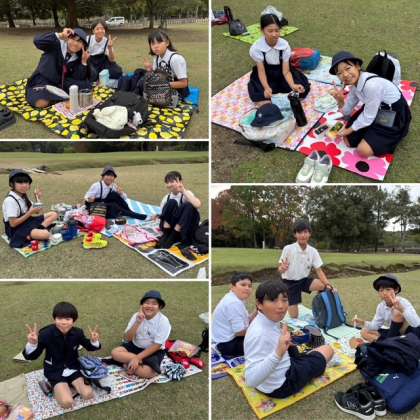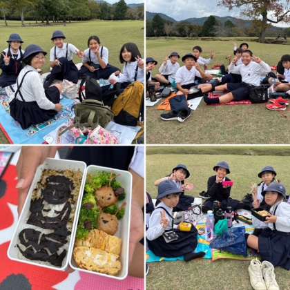 いよいよ待ちに待ったお弁当の時間となりました。広大な芝生広場の思い思いの場所で、おいしくいただきます。大仏と鹿をあしらったお弁当もありました。