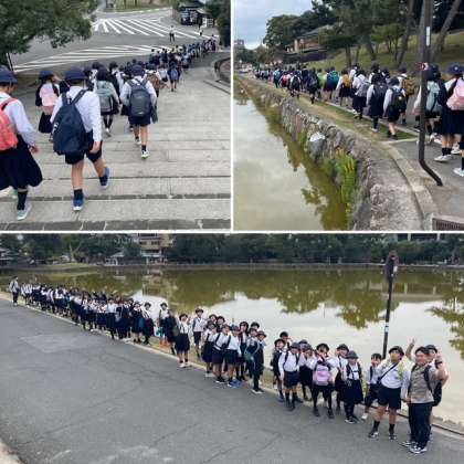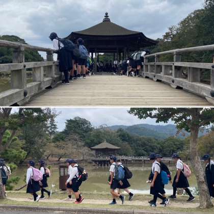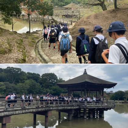 昼食後、午後の見学に向かいます。まずは、鷺池に浮かぶ美しい浮見堂と、西暦749年に人工池として造られた猿沢池です。