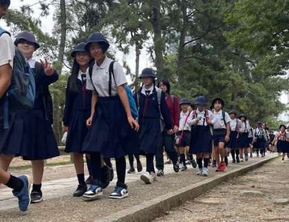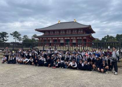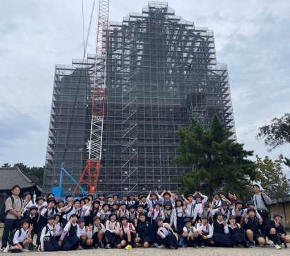 そして、最後の見学地は興福寺です。中金堂と五重塔前で、全体写真を撮りました。五重塔は、現在120年ぶりの大規模保存修理工事をしていて、巨大なクレーンと足場で覆われていました。すべての見学を終え、駅に向かいます。夜になって歩数計を見ると、25,000歩を超えていました。まさに文字通りの充実した「遠足」となりました。