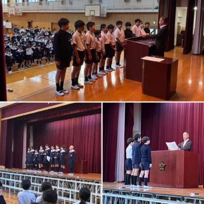 今週の児童朝会では、校長先生から赤い羽根共同募金についてのお話がありました。実は赤い羽根以外にも、緑の羽根や青い羽根など、全部で八色の羽根の募金活動があり、いろいろな分野で助け合い活動が行われていることがわかりました。また、地域のスポーツチームの表彰がありました。ソフトボール、キックベースボール、バレーボール、それぞれのチームが大会等で優秀な成績をおさめました。西天満小学校は地域のスポーツ活動も活発です!