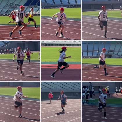最初の種目は、100m走です。直線で100mを走る経験はなかなかできません。とても遠くに見えるゴールに向かってダッシュします。