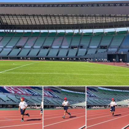 続いての種目は、400m走です。これも、普段はなかなかできない競技です。アスリートが使う本格的なトラックを一周走ります。