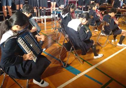 6年生の子どもたちが、学習発表会に向けて、合奏の練習に取り組んでいます。また、劇や取材報告では、舞台上の発表だけでなく、舞台照明や提示資料の切り替えなども分担して行います。本番に向けて、集中して練習することができました。