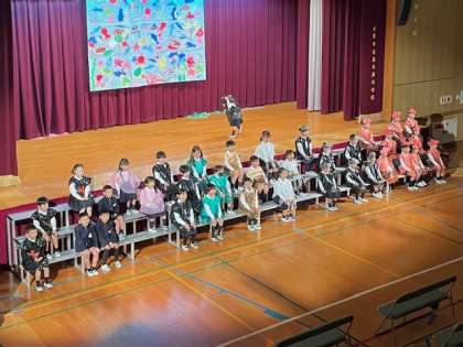 今日は、学習発表会で発表する内容を、子どもたち同士で鑑賞しあいました。まず、1年生は、劇「スイミー」、2年生は、学習発表「生活科 町たんけん」と、合唱「ぼくたち西天満小の子どもやでぇ」です。