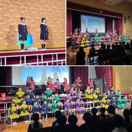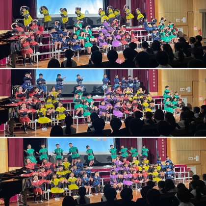 代表児童の「はじめの言葉」によって、令和6年度の学習発表会がスタートしました。トップバッターの3年生が、劇「西天満小学校 町の安全安心まもり隊」と、合唱「夕日が背中をおしてくる」で、華やかにオープニングを飾ってくれました。