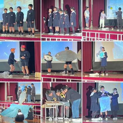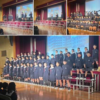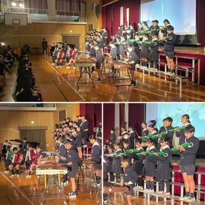 学習発表会のフィナーレを飾るのは、6年生です。合奏「Sing Sing Sing」で難しいスイングのリズム曲を見事に演奏し、シナリオや小道具をすべて自分たちの手でつくった「西天満の伝統を胸に 未来へ向かう新たな挑戦」で最高学年としての力を見せてくれました。そして、最後の合唱「ふるさと」で地域への思いを伝えてくれました。どの学年も、子どもたちが存分に力を発揮した、すばらしい学習発表会となりました。
