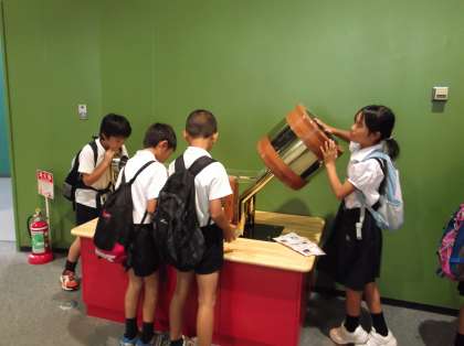 大阪市立科学館へ社会見学に行きました。プラネタリウムでは、月や星の動きについて学習しました。普段、町の中では見られない満天の星空を見ることができ、「わぁ、きれい!」と歓声があがりました。展示場では、いろいろな実験をグループで仲良く体験していました。