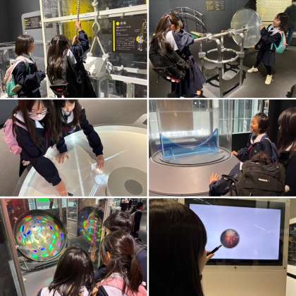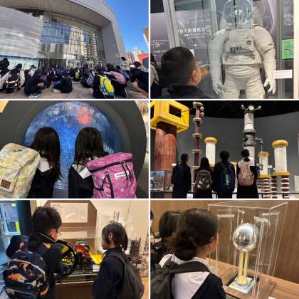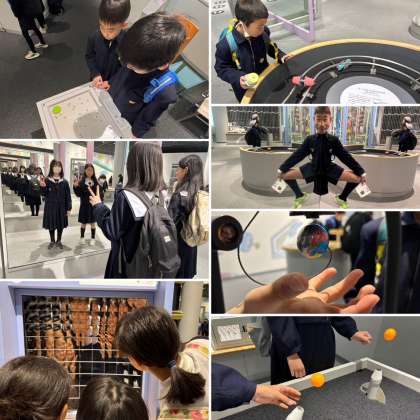 4年生と5年生が中之島にある大阪市立科学館に行きました。まずはじめにプラネタリウムで大阪の空の様子や、様々な星座を見ました。美しい星空に子どもたちは感動していました。その後、1階から4階までを巡り、いろいろな実験装置を使った体験や、展示資料の見学をしました。ボールや磁石、鏡など身近なものを使った実験装置で、楽しく体験学習ができました。