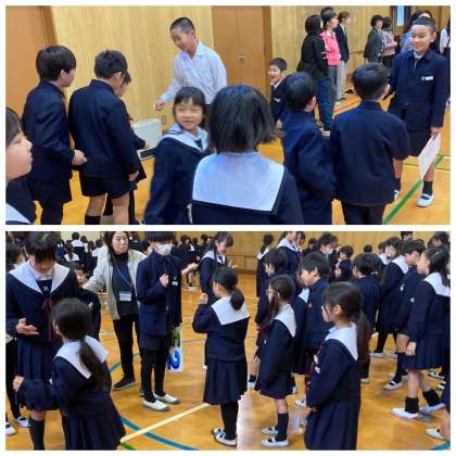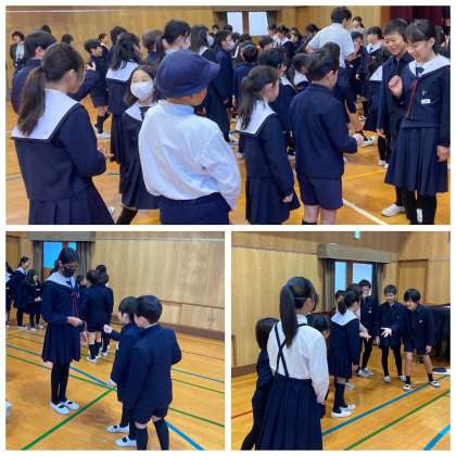 今朝の児童集会の様子です。班ごとに一列に並び班長さんとジャンケンポン!負けたら勝つまでジャンケンポン!白熱したジャンケン勝負になりました。