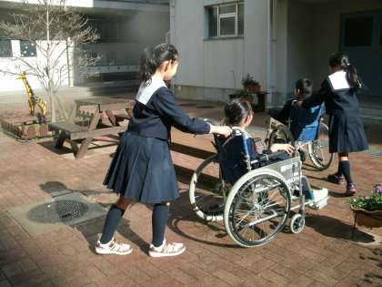 また、2人一組でお互いに車いすを押して校内を回ったときは、実際に車いすを動かす時に必要な注意を体験して、扱い方を理解することができました。