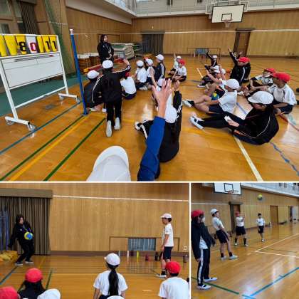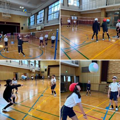 5年生が体育の授業で「プレルボール」に取り組んでいます。プレルボールは、ドイツ発祥のスポーツで、バレーボールに似ていますが、ボールを直接打つのではなく、一度バウンドさせても良いというところが特徴です。次第にコツをつかみ、チームで声をかけ合いながら楽しくプレーしています。