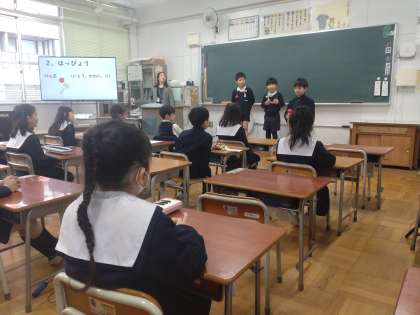 今年度最後の学習参観に多数ご参加いただき、ありがとうございました。参観での子どもたちの様子を順にお伝えします。1年生は、生活科「できるようになったこと はっぴょうかい」に取り組みました。