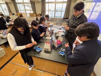5年生が理科で「電磁石のはたらき」について学んでいます。今回は、電流を流すことで鉄の芯が磁石になる「電磁石」の実験を行いました。電池の数を変えたり、コイルの巻き数を増やしたりしながら、電磁石の強さの変化を確かめました。クリップや鉄くぎを引きつける力が強くなる様子を見て、「もっと強くするにはどうしたらいいんだろう?」と、考えながら学習を進めていました。