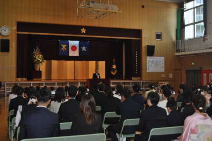 たくさんの方々が温かく見守ってくださる中、42名の1年生が入場しました。はじめに、校長先生の「お友だちを大切にすることをがんばりましょう」というお話を、しっかりと聞くことができました。