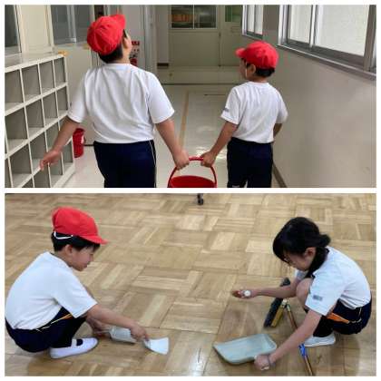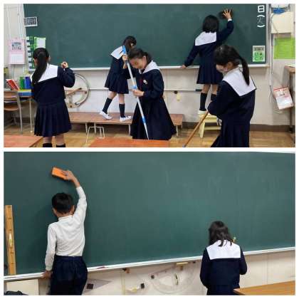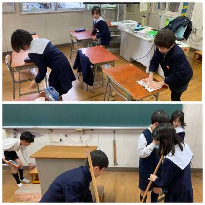 掃除の時間中、一生懸命頑張る子どもたちをたくさん見つけました。これだけ集中して取り組むと、10分間という短い時間でも、見違えるほどきれいになっていきます。子どもたちの様子を見ていると、とても誇らしい気持ちになりました。