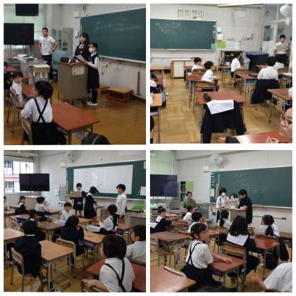 5月19日(月)の万博訪問に向けて、万博たてわり班での初顔合わせを行いました。6年生・5年生が中心になり、自己紹介をしたり、班のめあてを決めたりしました。また、2列での並び方も確認し、誰とペアになるのか、1列のときはどう並ぶのかを実際に並んで確かめました。5月7日(水)の午前中に、万博たてわり班を活用した全校遠足ということで、中之島公園に行く予定です。お弁当はいりません。班のみんなで楽しく活動して、仲良くなりましょう。