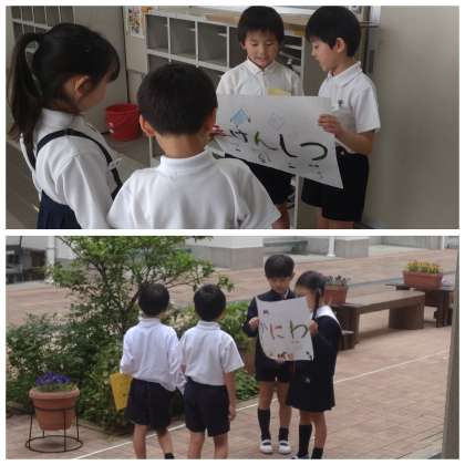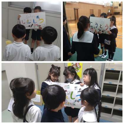 先週に引き続き、生活科の学習として「学校たんけん」を行いました。優しい2年生が教室から色々な場所へ案内していました。1年生が来るまでの間に、自分たちで部屋の説明の原稿を読む練習をする2年生の姿もありました。1年生に分かりやすくなるように、はきはきと大きな声で伝えることができていました。