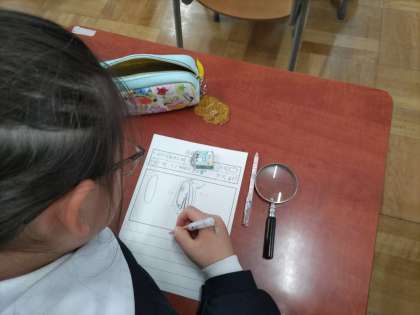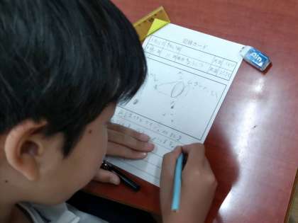 4年生が理科の学習で種の観察を行いました。ヒマワリ、ヒョウタン、ヘチマの3種類です。虫眼鏡で観察し絵で記録しました。少しとがっていたり、出っ張りがあったり、へこんでいたり、模様があったり等、じっくり観察することができました。それぞれの種の形や大きさ、色等の記録も残しました。「ヘチマはスイカの種みたいやなあ」と今までの経験と比べて考える子もいました。さすが4年生ですね!