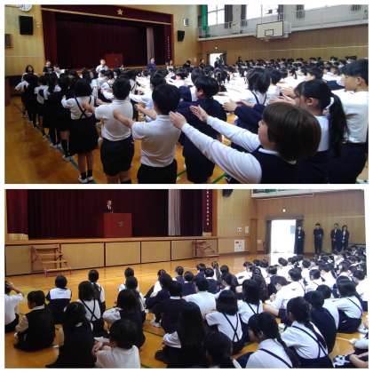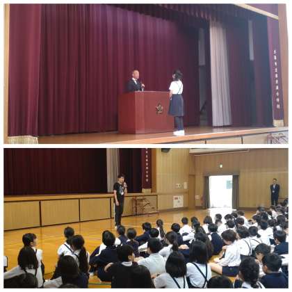 今日の全校朝会では、キックベースボール西天満レッドソックスの表彰がありました。また、司会の先生からは、今月の生活目標「元気よくあいさつをしよう」についてのお話がありました。自分から進んであいさつができるように、毎日の生活の中で意識して行動しましょう。