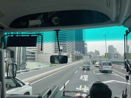 バスはゆったりと乗れて、快適です。阪神高速に入りました。