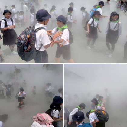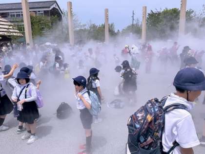 いのちパークの地面から噴き出すミストです。非常に濃密なミストにみんなびっくりしていました。