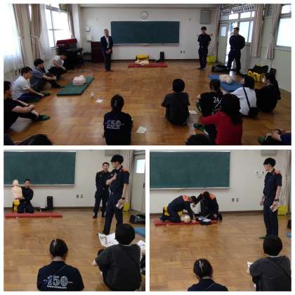 北消防署の方にお越しいただき、6月末からのプール水泳学習を前に、救急救命講習会を行いました。心肺蘇生法、AEDの使い方について、一人ずつトレーニング用の機器を使いながら、参加者全員が実技訓練をして学びました。子どもたちの生命を守るために、全教職員協力して取り組んでまいります。