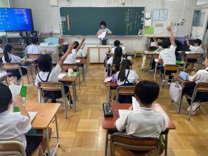 4年生は、国語「人物の気持ちと行動を表す言葉」と、体育「保健・栄養のおはなし」の学習に取り組みました。