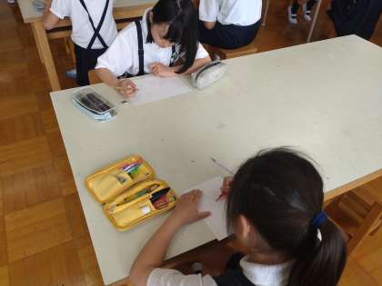 「イラスト工作クラブ」では、想像をふくらませたり、パソコンで調べたりして、それぞれ集中して描いていました。